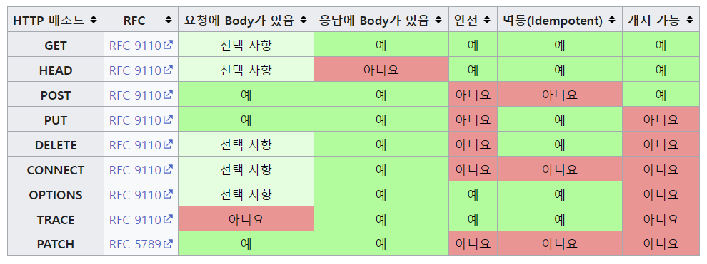 1. GET- 리소스 조회- 서버에 전달하고 싶은 데이터는 query를 통해서 전달- 메시지 바디를 사용해서 데이터를 전달할 수 있지만, 지원하지 않는 곳이 많아서 권장하지 않음 2. POST- 요청 데이터 처리- 메시지 바디를 통해 서버로 요청 데이터 전달- 서버는 메시지 바디를 통해 들어온 데이터를 처리하는 모든 기능을 수행- 주로 전달된 데이터로 신규 리소스 등록, 프로세스 처리에 사용 3. PUT, PATCH, DELETEPUT- 리소스가 있으면 대체- 리소스가 없으면 생성- 클라이언트가 리소스 위치를 알고 URI 지정 (POST와의 차이점) PATCH- 존재하는 리소스 부분 변경 DELETE- 리소스 제거 4. HTTP 메서드의 속성안전- 호출해도 리소스를 변경하지 않는다. 멱등- 한 번 호출하..